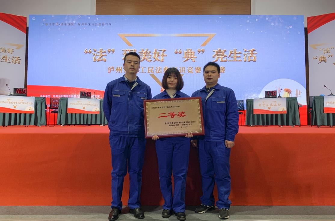 此次民法典竞赛是由泸州市委全面依法治市委员会办公室、泸州市司法局、泸州市总工会联合举办。在第一轮笔试答题初赛中,公司代表队从14支队伍中成功晋级决赛,并与江阳区总工会、自贸区总工会、泸州老窖集团公司工会等8支队伍同台比拼。此次进行的决赛在市总工会大楼多功能会议厅举行。决赛题目涵盖了《民法典》中物权、合同、婚姻家庭、继承等与职工生活与工作相关的内容。同时,还邀请了西南医科大学法学院教授、泸州市知名律师事务所律师对答题内容作现场点评,在更好的答疑解惑的同时,也普及了相关法律知识。比赛中,各个代表队参赛选手们答题沉着冷静,抢答紧张激烈,经过“个人突击”、“齐心协力”、“幸运锦囊”、“乘风破浪”四个环节的比拼,公司获得比赛二等奖。