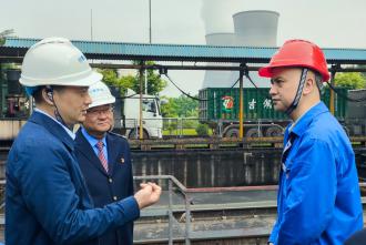 4月15日,四川蜀道铁路运营集团董事长张锋一行到访公司,就煤炭运输、铁路接卸及电煤保供协同等事宜进行调研交流。张锋一行抵达公司后,在公司党委书记、总经理陈嵩的陪同下,实地参观了翻车机作业现场。陈...[详情]